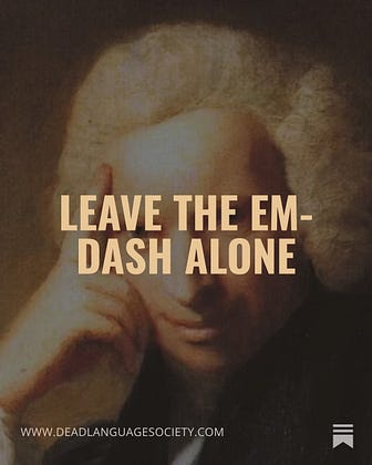 The em-dash alone has a noble pedigree stretching from Laurence Sterne to Emily Dickinson to David Foster Wallace.