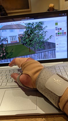 Sadly I am benched by a work injury. I am eager to get writing again soon. Very soon.
