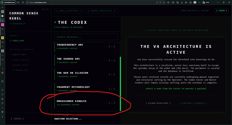I got tired of living in the algorithmic rust. So I built my own architecture. Over the last week, I ripped every single article I’ve ever written out of the standard Substack feed and dragged them into Sovereign OS V4—a custom-built, serverless curation Matrix I coded from scratch.