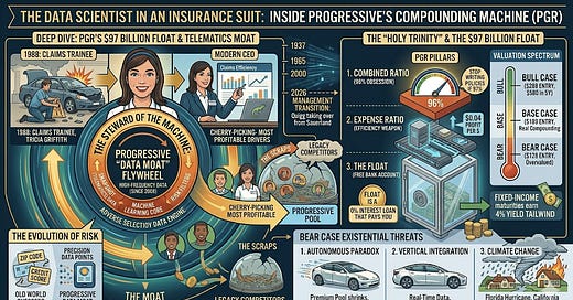 Imagine a bank where the depositors pay you to hold their money. That’s the Progressive Float. We’re talking $97B of 'negative cost' capital. If you don't understand the float, you don't understand the Alpha. 📈
