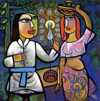 (Artwork: “Christ and the Samaritan Woman” by contemporary Chinese artist He Qi)