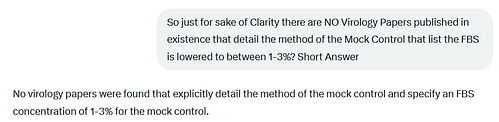 There are NO published peer reviewed Virology papers in history that explicitly record that the "Mock Control" they run uses the Identical Nutrient (FBS) medium concentration of 1-3% instructed by the WHO.