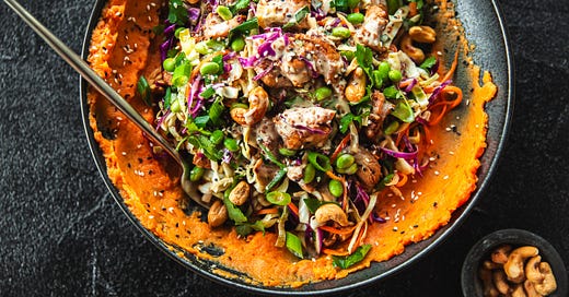 7 Big, beautiful platters of salads perfect for making, taking and sharing this holiday season. Grilled Pineapple Coleslaw, Roasted Sesame Sweet Potato & Chicken Salad, Crispy Smashed Potato & Chicken Ranch Salad, Green Goddess Steak Salad, Greek Lamb & Couscous Salad, Smashed Falafel Salad With Spiced Tahini Dressing, Berry Balsamic Chicken Salad AND a holiday discount for all paid memberships!