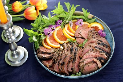 An herby, garlicky marinade meets the grill and makes big flavor for this boneless leg of lamb.
