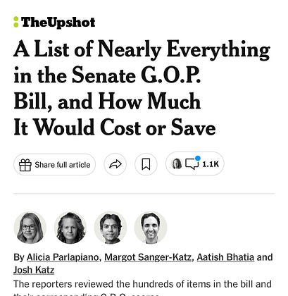 Another way to look at this bill the big beautiful Bill would be how many Americans or people in general it’s gonna kill and how many lives is gonna save and how it’s gonna affect our society as opposed to will it cost more or less for this or for that. Such an odd framing that we have.