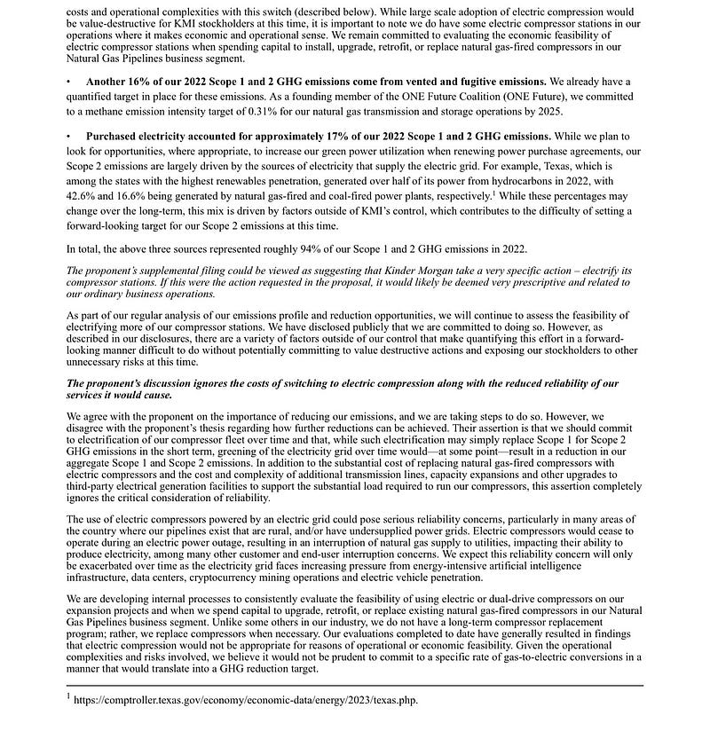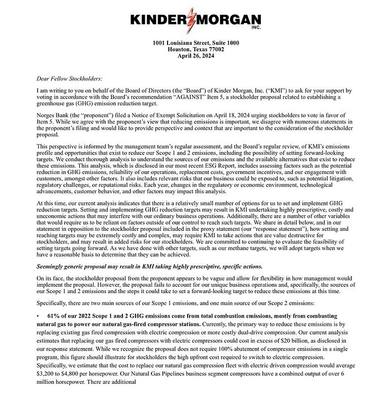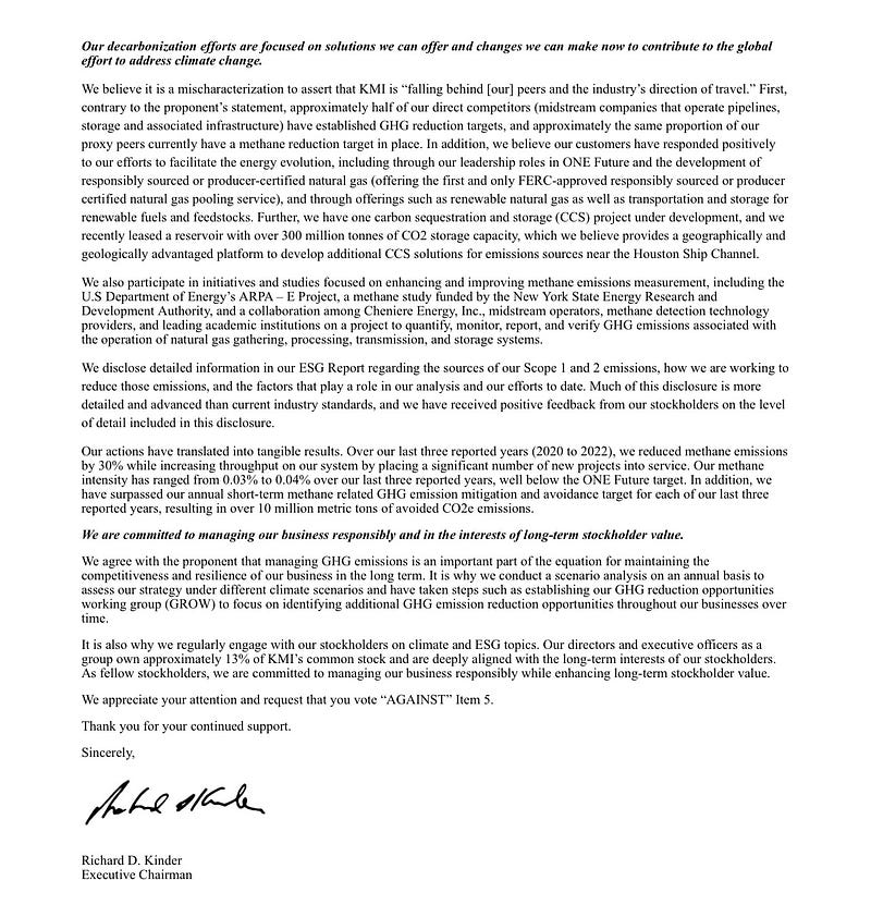 Kinder Morgan $KMI filed a solicitation today rebutting certain claims in Norges Bank’s solicitation last week, urging investors to vote AGAINST the climate shareholder proposal