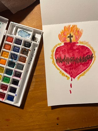 I draw all sorts of pictures for my children. I laminate them, punch a hole in the corner, place on a key chain and then they take them to church. I have a lot of people ask if I sell my “cards”. The Sacred Heart will be available on my Etsy for you to print out for a very cheap price this week. I don’t want to make money off of it. I’m just a stay at home mom who draws very simplistic images. I do know the importance of keeping little ones occupied in offices, mass, etc. I love having things that make them think and ask questions. I hope this brings some joy. 🥰