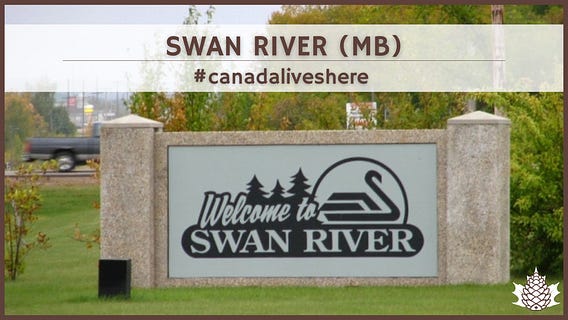 #109. Welcome to Swan River, MB. Near the Saskatchewan border. It sits in a valley between the Duck Mountains and Porcupine Hills. In 2021, it had 4,049 residents, making it Manitoba’s 18th most populous town.