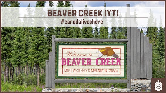 #35) Welcome to Beaver Creek, YT. Beaver Creek, Yukon sits near the Alaska border on the historic Alaska Highway. Population hovers around 90 year-round, swelling in summer. It’s known as Canada’s most westerly community.