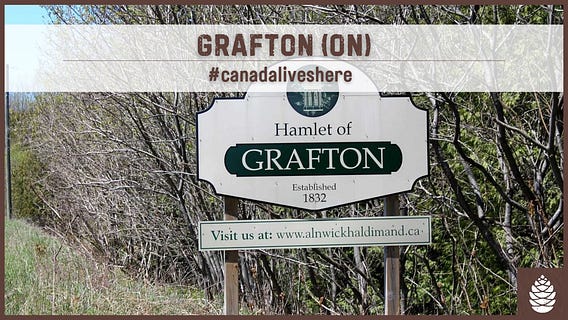#83. Welcome to Grafton, ON! Grafton is a hamlet in the Township of Alnwick/Haldimand, Northumberland County. It sits about 12 km east of Cobourg along County Road 2 and has under 1,000 residents. Near Hwy 401, it’s easy to find on the map!