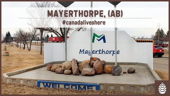 #91. Welcome to Mayerthorpe, AB! It sits about 120 km (75 mi) NW of Edmonton, where Highways 43 & 22 (the Cowboy Trail) meet. Population: 1,343 (2021). Surrounded by rolling hills in Lac Ste. Anne County, it’s in Census Division 13. Let’s dive in!