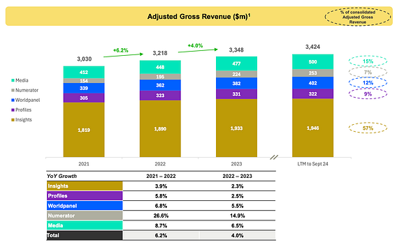 A quick note about WPP following some news developments over the weekend. With the intention of not making my deep dive longer or more boring than necessary, I neglected to mention that WPP retains a 40% stake in market research firm Kantar, having sold the other 60% to Bain five years ago. Bain, being a private equity firm, levered Kantar up as part of the original arrangement - so WPP’s 40% stake came from minimal equity investment.