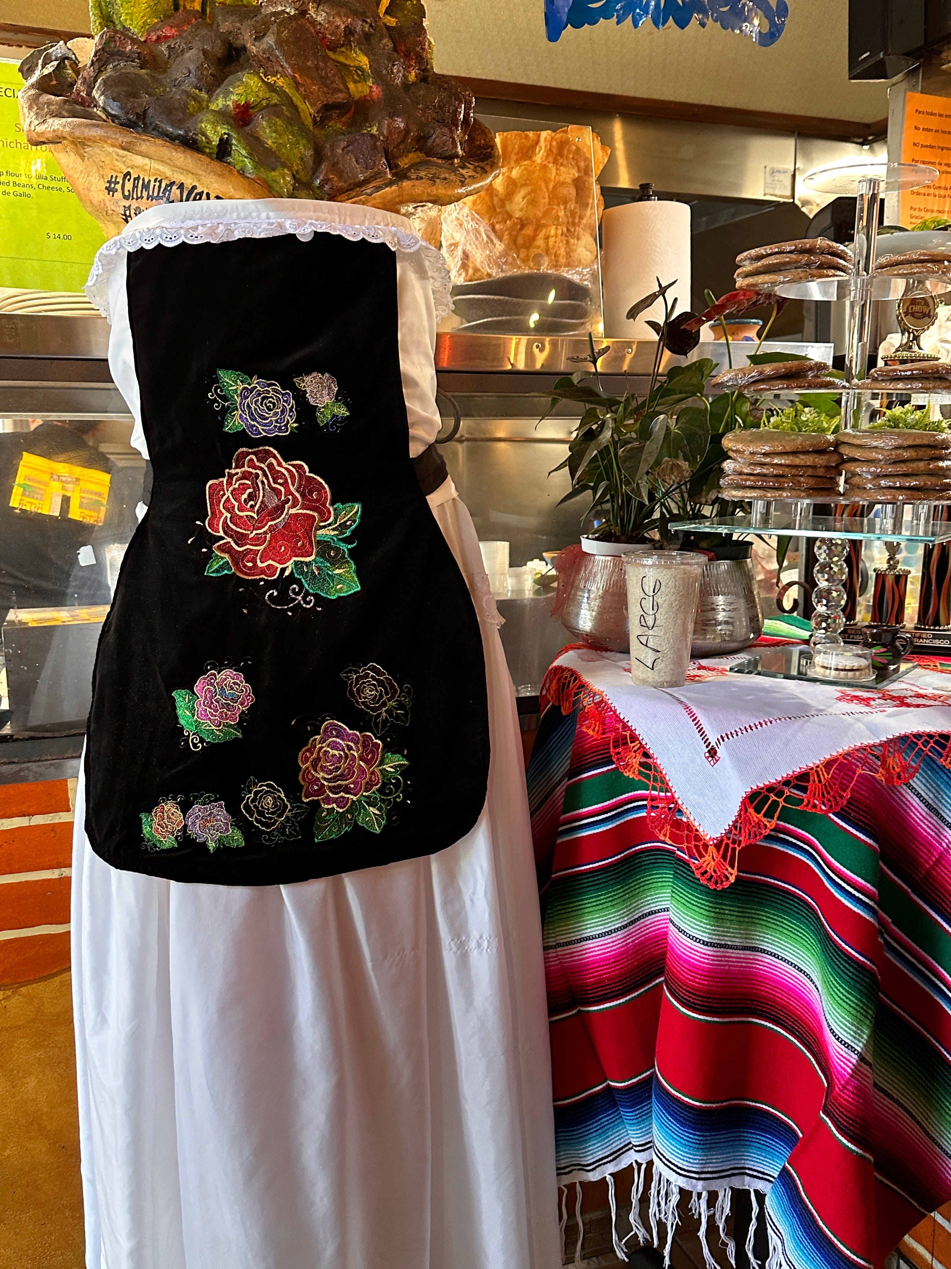 Apron photo taken today inspired by the challenge. Others from my recent archive include two of my puppy’s high fashion :) one is from an embroidery exhibit at the San Francisco School of needlework.