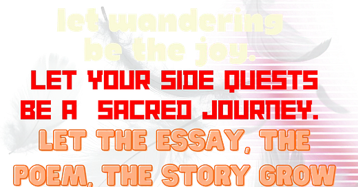 i say this while linking this particular post because it’s about leaning into our brains weirdness as part of our creative process. it’s a defiant celebration of our tendencies to be distracted by side quests and talk a lot about our interests. it says we are not broken, we are not too much.