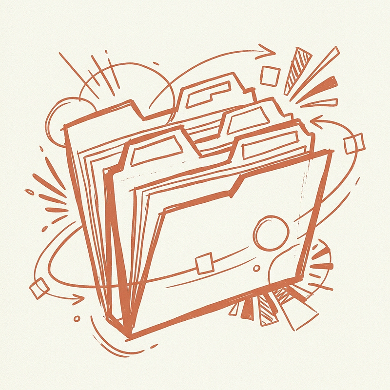 Hand-drawn editorial illustration in warm earthy tones. Slightly imperfect ink and pencil linework on off-white paper texture. Color palette: terracotta rust-orange, dusty sage green, muted dusty blue, warm cream, deep charcoal. Organic, analog feel. Reminiscent of a quality literary magazine or thoughtful brand identity system. Human figures thinking and working. Accessible, warm, humanistic. No digital gradients, no neon, no cold blue tones. --ar 4:3 --style raw