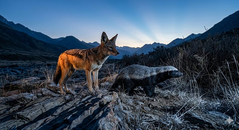 Why: The jackal has the intelligence and the fire. The honey badger has the absolute refusal to be stopped. Together we're a problem for anything in the terrain.