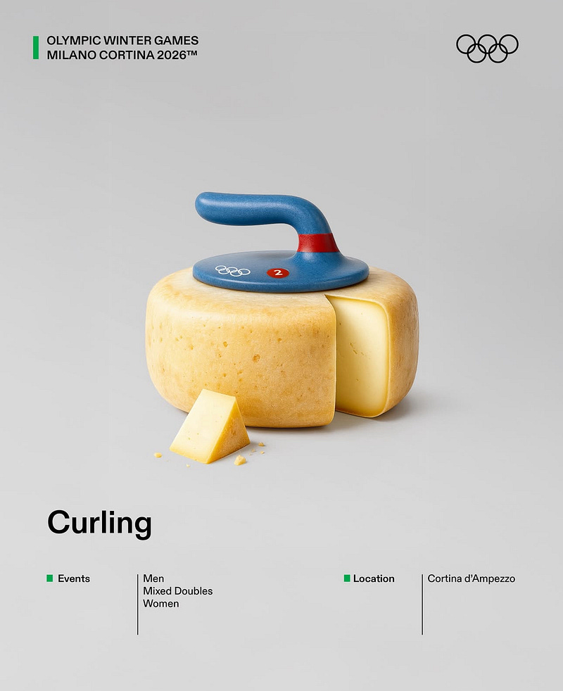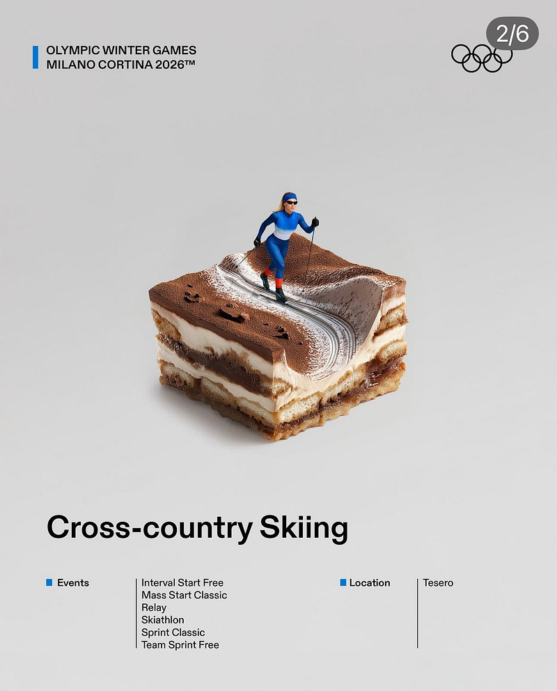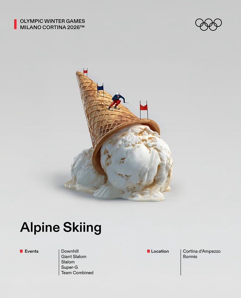 These official Milano–Cortina 2026 graphics jam winter sports with sweet Italian icons. Tasty design that makes you smile.