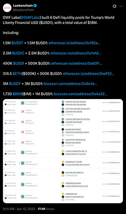 The Russian crypto scammers at DWF Labs are helping make sure Donald Trump's new stablecoin (USD1, issued by World Liberty Financial) can be easily laundered through various other stablecoins and spread throughout the cryptoverse.