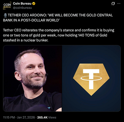 (also there’s the minor detail that Tether is declaring itself to be the “gold central bank” currently claiming to hold tens of billions of dollars worth of gold in a “nuclear bunker” even as it refuses to let anyone count or even see the gold it claims to have in its possession)