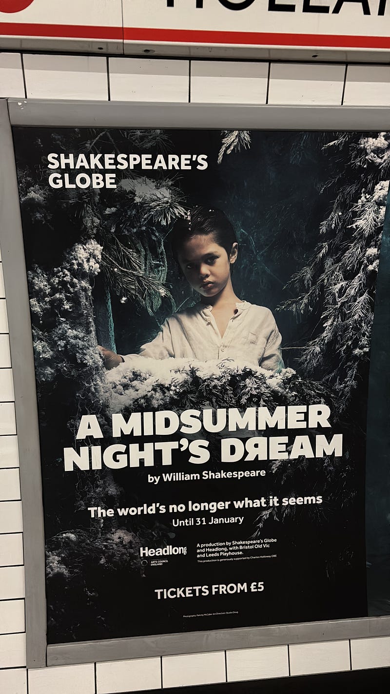 I went to see a rather strange adaptation of A Midsummer Night’s Dream at the Sam Wanamaker Playhouse. Bit of a strange one to pick for December, I think (why not, for instance, The Winter’s Tale?)!