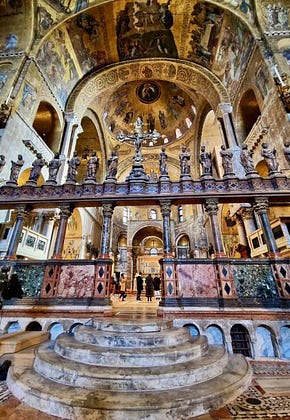 Gold mosaics drawn from the Byzantine world, reshaped into something distinctly Venetian.