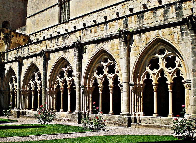 Photo (left): Cloister of Poblet Monastery, Spain (founded 1153). By Jaume Meneses - Flickr: Monestir de Poblet, CC BY-SA 2.0.