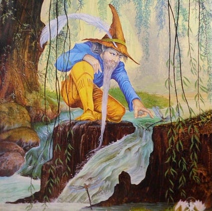 So, Bombadil is a representation of what it means to take pure delight in the world around you — to experience people and things simply as they are, without any thought for what they could be or how you could use them. And this is why the Ring has no power over him.
