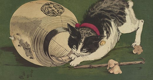 Today in Japan it's National Cat Day. In Japan, cats say "nyan, nyan, nyan" rather than "meow, meow, meow." Today's date is 22/2 (ni ni ni) which apparently sounds a bit like “nyan nyan nyan” so cats are celebrated on this day each year. I’ll just reshare my post about cats in Japanese folklore and culture below in case you'd like to read more.