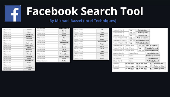 A free online tool that generates quick links to search for information on Facebook by user name, user ID, location ID, or keyword.