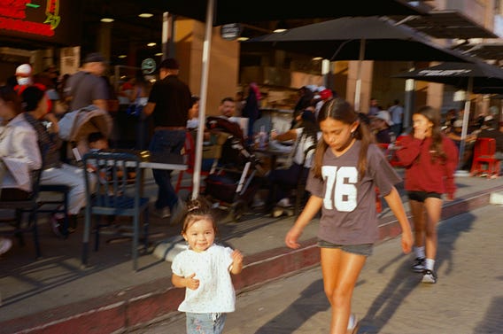 The joy of shooting street photography on film: How is she lit and in focus, and no one else is? I have no idea. I like to credit gremlins who live in my camera.