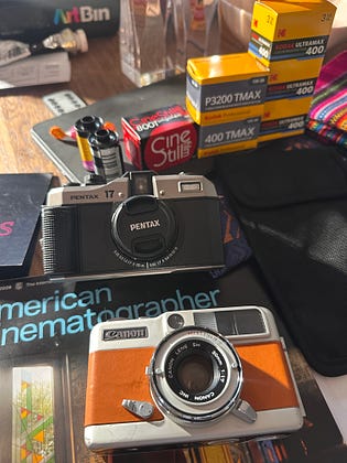 Friends and I have started playing with Half Frame cameras. I want to always shoot 35mm when I travel. But when airlines weigh my carryon (FX3 + Leica M6), I get flagged. I like that the Pentax 17 is SO light. I just shot a roll & dropped it off at Icon to be developed. It can’t be a substitute for the Leica, but might be fun to travel with. Actually, I suspect it will be a substitute for shooting on my iphone.