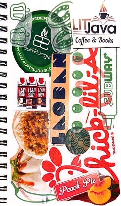 This is a food theme for my junk journaling page. Took me about a handful of days just to cover the page, but I had fun with this.