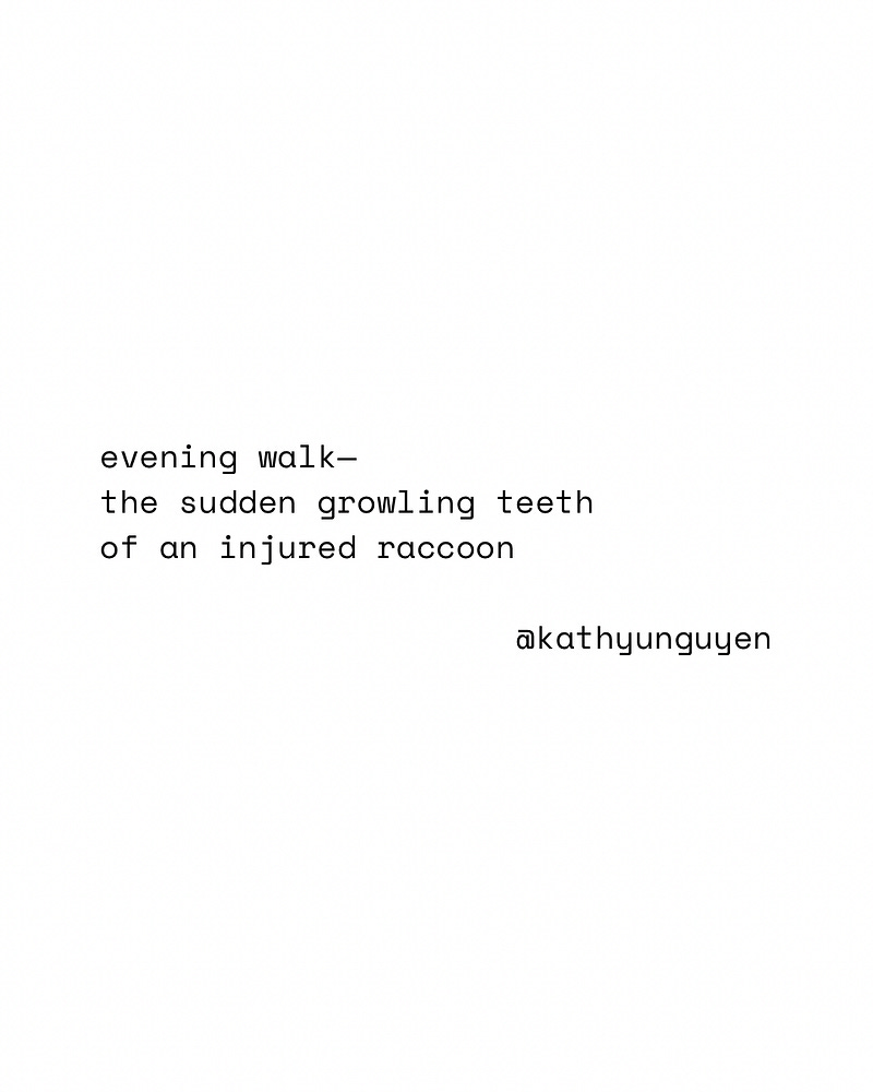 Wrote 2 short poems for this prompt. Was a fun one (based on a true story of my raccoon encounter).