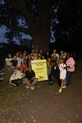 Last night my partner hosted a strangers picnic to encourage people in a lonely city, to sit with food and chat spontaneously. It was incredible.
