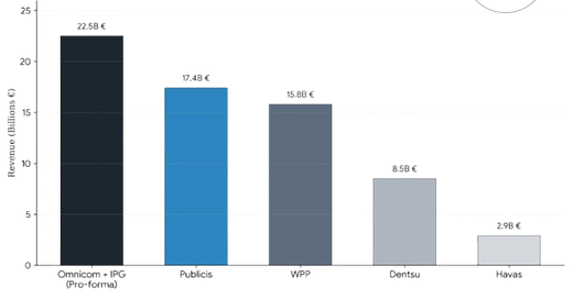 La integración Omnicom + IPG redefine el liderazgo por tamaño. Pero cuando aislamos el efecto adquisición, la foto orgánica es menos espectacular. ¿Estamos midiendo crecimiento real o expansión vía concentración?