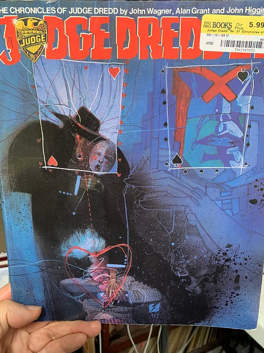 Not that anybody cares, but the Titan Judge Dredd album collections from the 1980s are worth buying for the covers alone, especially as they have actually declined in value over the past 35-40 years and are usually super cheap. Here is peak Bill Sienkiewicz at his berserk best. IYKYK, word to the wise, etc.