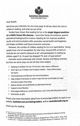 These are now being printed in the back pages of kids & YA novels in Australia by participating publishers (like mine, Hachette)