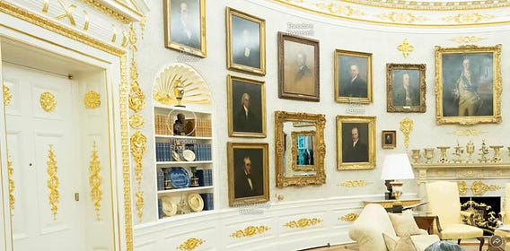 Trump is a vulgarian with terrible taste, BUT I unironically think his Oval Office design overhaul is pretty cool. I like the gold and the floor to ceiling portraits. For real.