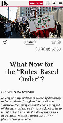 For observers not trained to understand the difference between positive and normative analysis, it is too easy to confuse what is right from what merely is. (All those bold statements about Might Makes Right....). When all this turmoil ends, however it does, there will need to be a reckoning both within the US and across the international community.