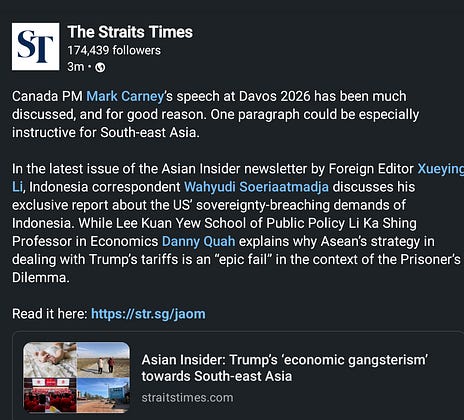 Mark Carney put on the table that capitulation is not the best response, even to someone playing the "We're a Superpower" strategy. Instead, better is to mitigate.