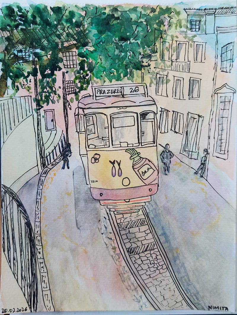 Watercolour base using a boardgame cardboard stencil followed by black copic pen for detailing followed by Watercolour for shadows and figures. ✨