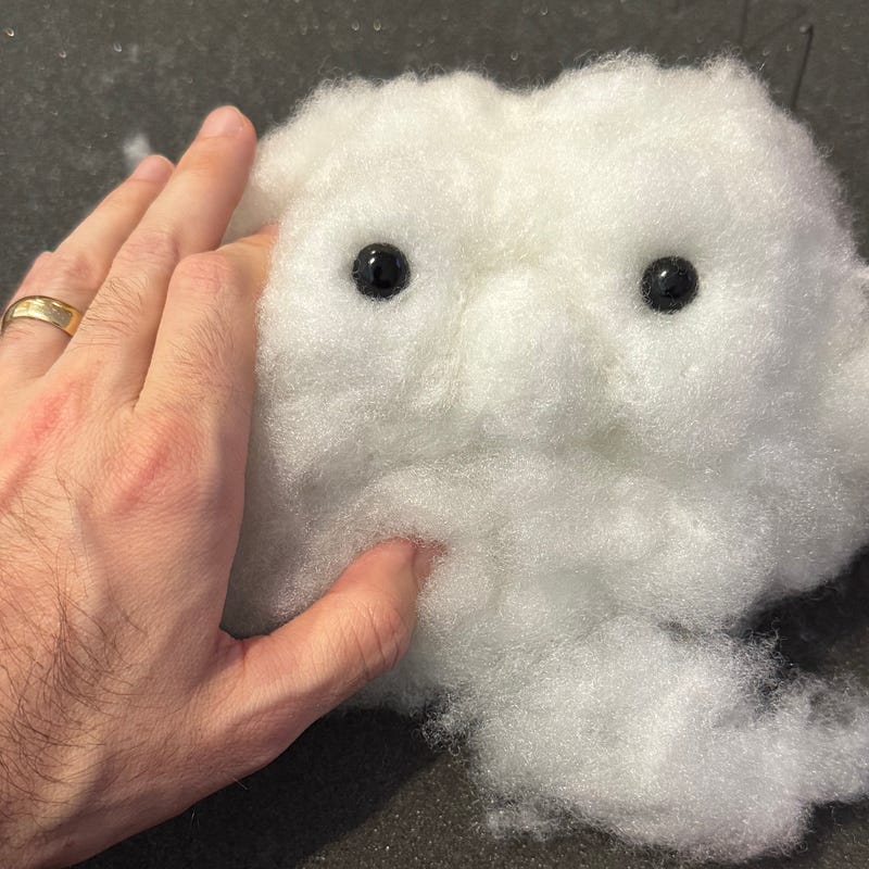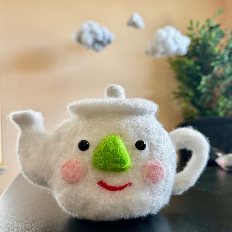 I actually started this guy as another cloud but decided to attempt the teapot - the eyes were way too big as the cloud (second image)- so kinda gotta rework t…