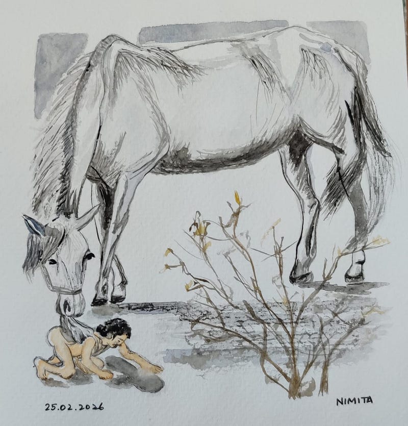I finally got to use the flesh tint colour from my watercolours pack. 😅