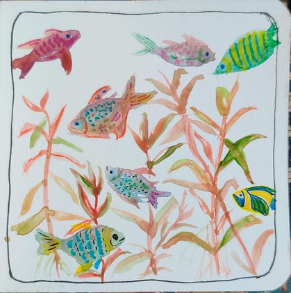 Watercolours, coloured micron pens and gel pens for details! ✨