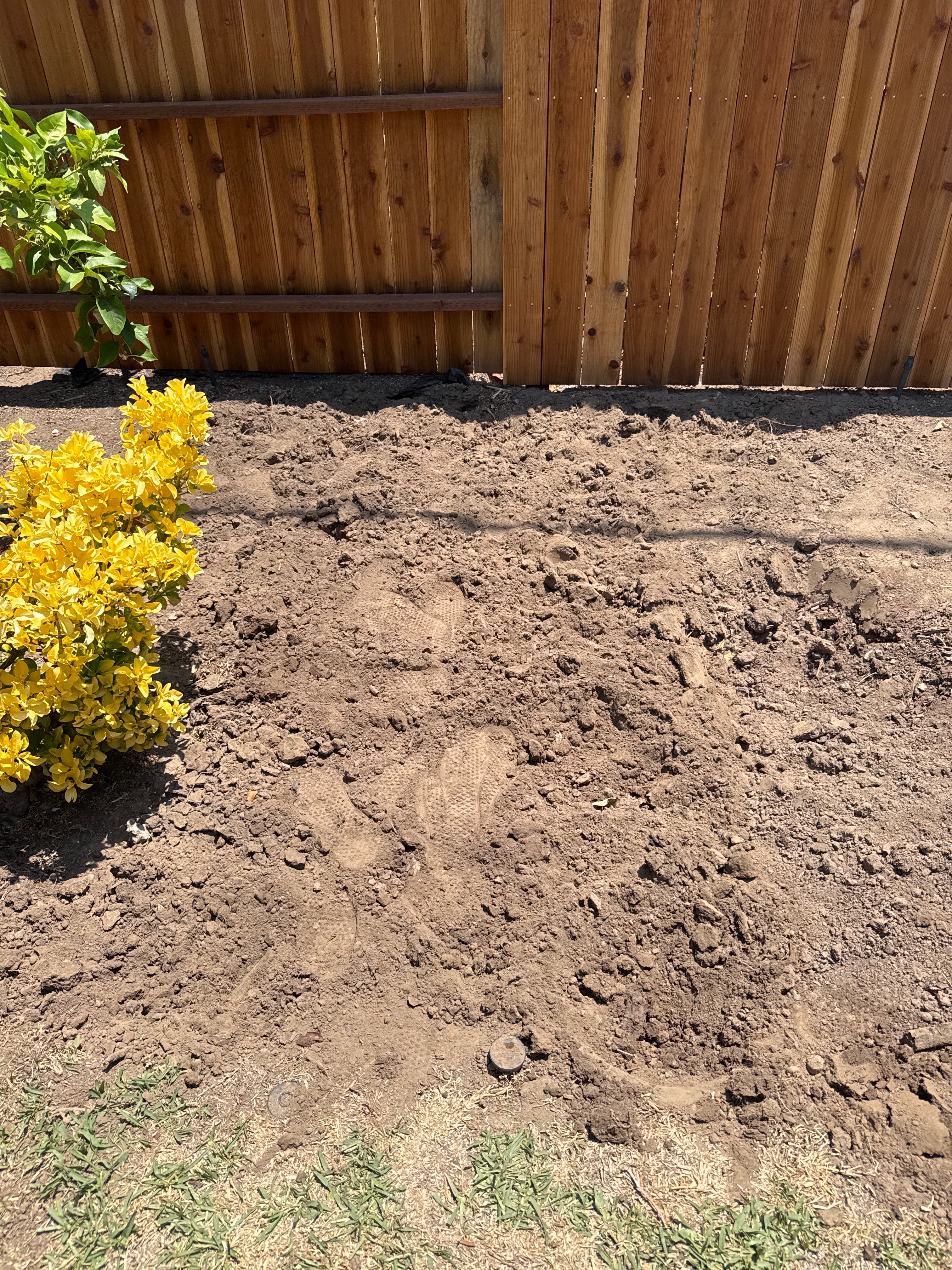 The grass is going away in lieu of hard scape slabs, ground cover, a fire pit, and comfy seating with cup holders to enjoy tasty beverages while trying not to set the neighborhood on fire.