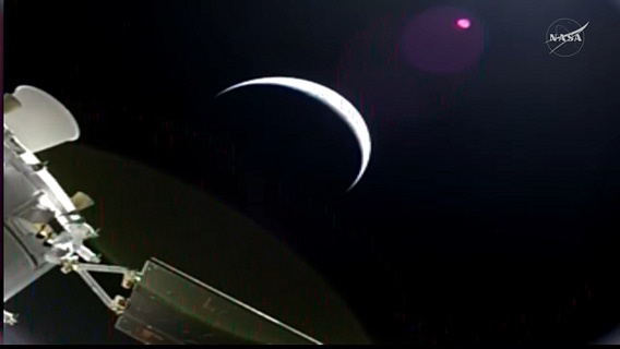 Live view of the crescent Earth from Orion. The resemblance to a couple of my logo designs has not gone unnoticed.