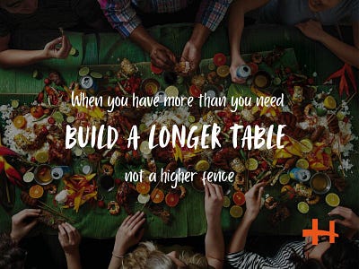 If you have an abundance mindset, you see what is possible. You know that you can grow the table and add more seats, and there will always be enough, because together you are more than the sum of your parts. You can mentor and invest in others and share your resources to generate more and invite even more people to the table to join you. You can lift up other communities who haven't had the same privileges or benefits, so they in turn can do the same.