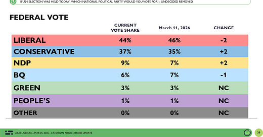 Liberal Lead Holds as Political Environment Settles Into a Steady Pattern