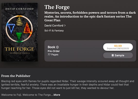 Launching this week in Apple Books, all markets. The Forge, an epic dark fantasy novella.