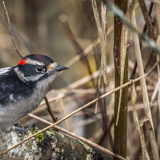 (Downey Woodpecker, Great Blue Heron, Golden-crowned Sparrow)